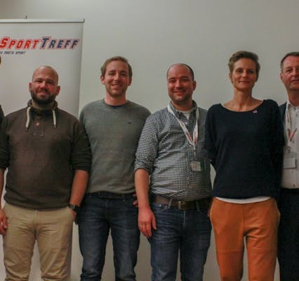Dazu begrüßte der Moderator Daniel Schüler Vertreter von fünf Sport-Start-ups. Jeder Podiumsgast stellte sein Start-up, seine Konzepte, die Finanzierung und seine Ziele in kurzer Pitch-Form den rund 60 interessierten Zuschauern vor und beantwortete anschließend Fragen des Publikums.
